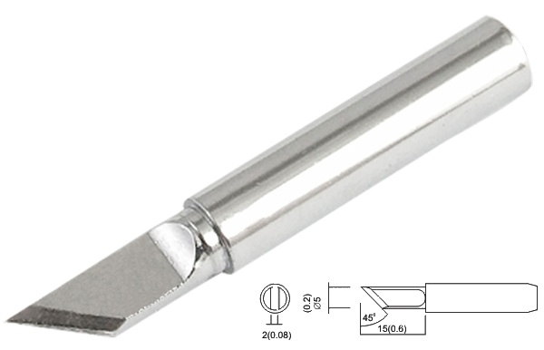 Нож со скосом 45 градусов, ширина ножа 5,0мм, длина рабочей части 15 мм, общая длина 40мм, для паяльных станций Quick-969, Quick-967, Quick-375B, Quick-936, Quick-704, Quick-702, Quick-963A, Quick-236, Quick-375A+/375B+