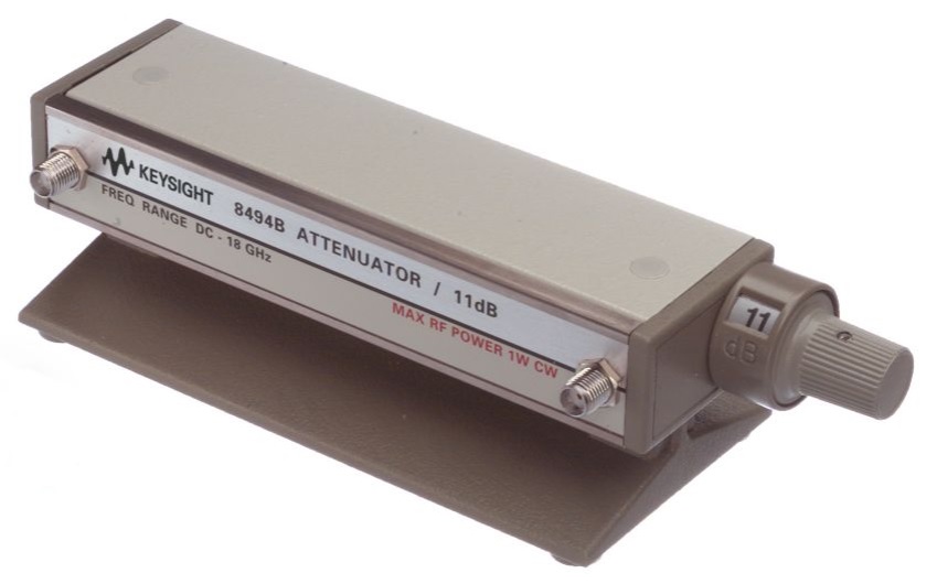 Keysight 8494A, ручной ступенчатый аттенюатор от постоянного тока до 4 ГГц, обеспечивает исключительную повторяемость и надежность. Затухание обеспечивается с шагом 1 дБ от 0 до 11 дБ. Прецизионные позолоченные листовые пружины обеспечивают длительный срок службы (более 5 миллионов циклов) и очень высокую воспроизводимость аттенюатора (обычно 0,01 дБ).