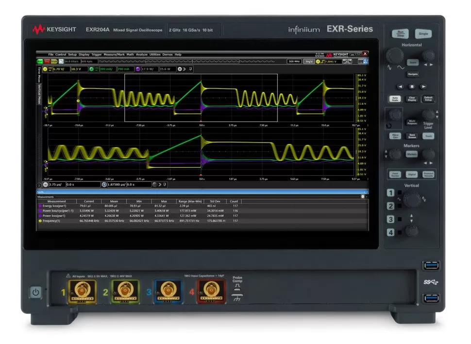 Серия Infiniium EXR - это мощный, простой в управлении и интуитивно понятный в использовании осциллограф, обеспечивающий полосу пропускания до 6 ГГц и частоту дискретизации 16 ГСа /с на каждом из четырех или восьми каналов.